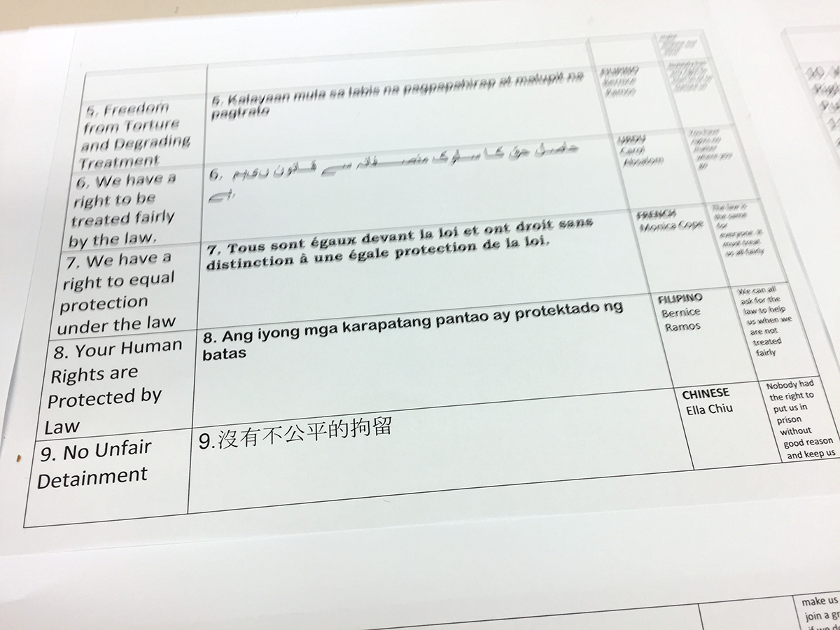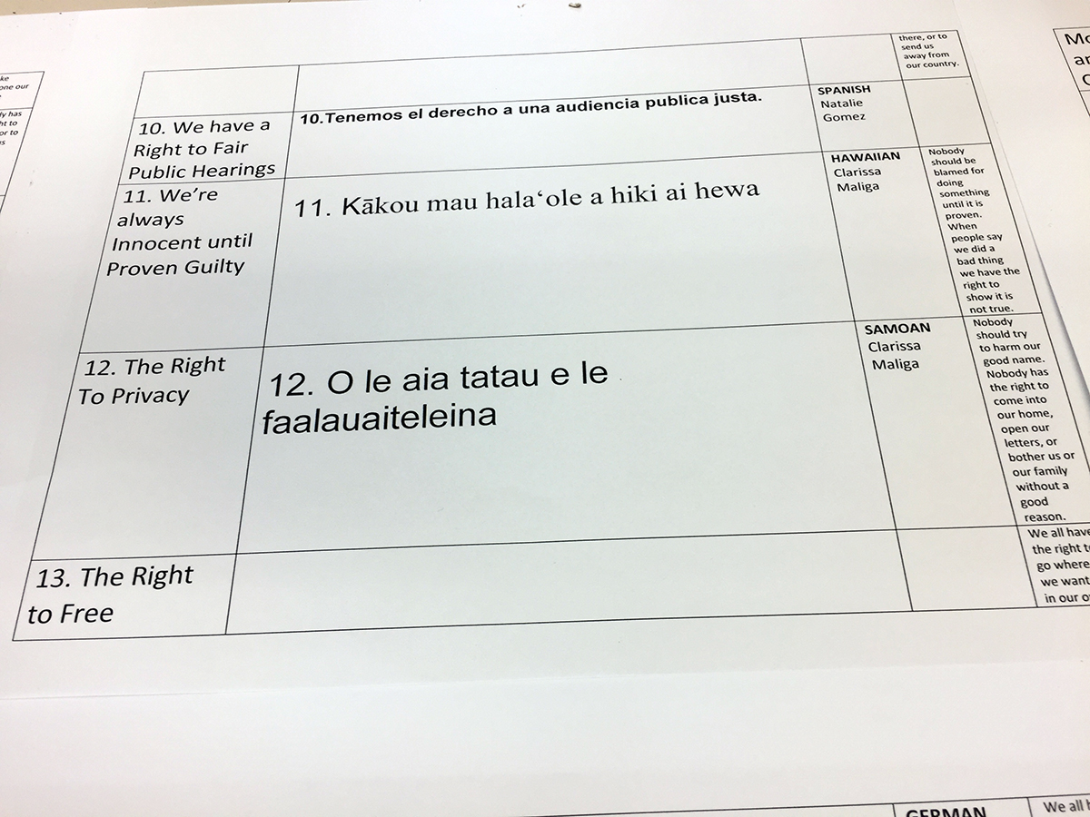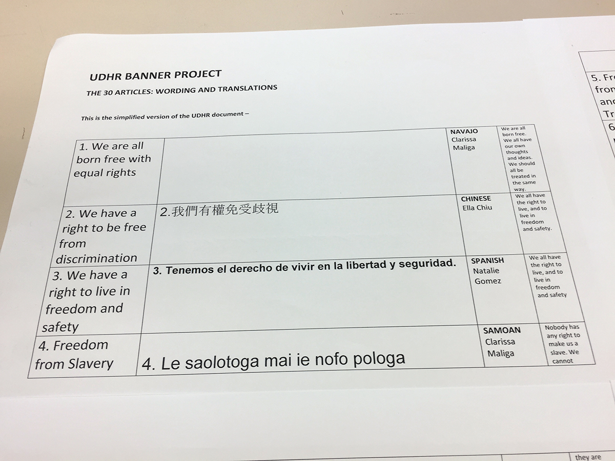 Student government members chose the succinct wording for each article, and teachers and other staff are helping translate the articles into Spanish, Urdu, Russian, Arabic, Hebrew and other languages.