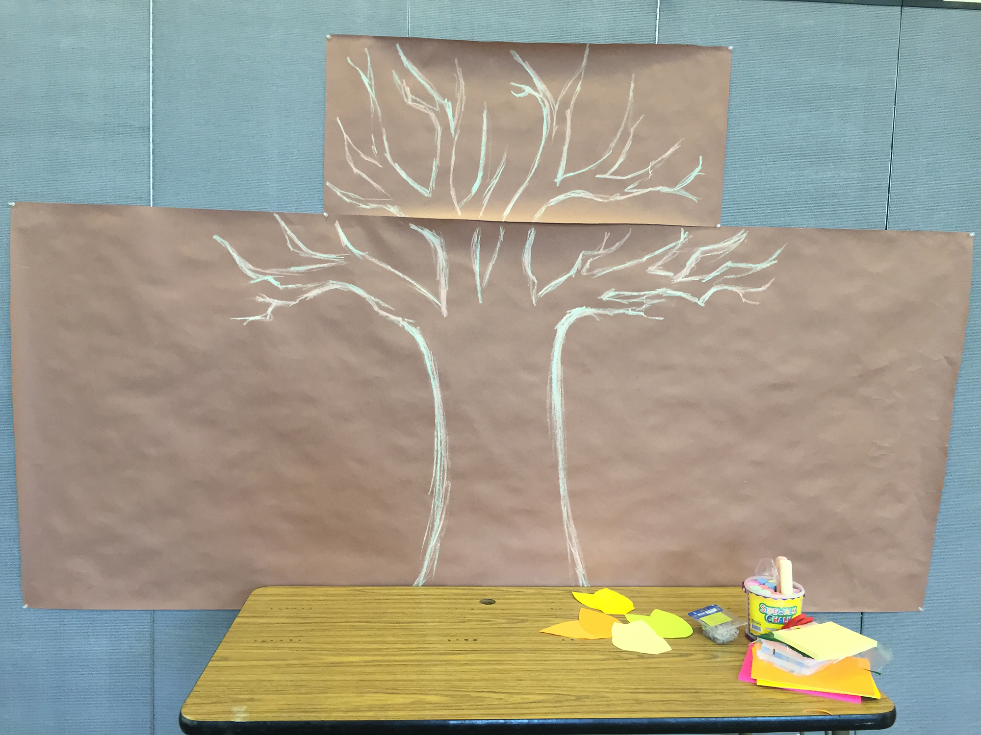 - Bare human rights tree, before participants added the “leaves” of their reflections. Photo: Pat Steacy, USF